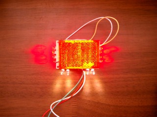 使用LEDは、 表面 :TLRH180P×42個(15mA) 裏側 :TLRH180P×8個(20mA) ナンバー灯:NSPW-500BS×4(20mA) ※電球色 最初は表面の42個だけだったのですが、テストしてみると発光面が狭くて違和感があったので裏側にも取り付け、リフレクターに照射して面積を稼ぐことにしました。 スペースの都合で、発光部は極力小さくまとめたかったのです。小型車は厳しい・・・ さらに表側のLEDの光を散らすため、カー用品のリフレクターを上から被せました。これを通すと、70度位の角度で6方向へ光が分かれますので、光の拡散に有効だと思います。 これを基板(72×47×1.6mm)一枚に収め、LY-010を裏側にグルーガンで固定しました。 点灯して正面から見ても、極端に眩しいことはありません。(画像1、2) テールレンズを通すとこうなります(画像3、4)。このレンズ側に、ネジとグルーガンで基板を固定してあります。 バイクに装着してブレーキ点灯(画像5) ・・・真昼間に撮ったのと、デジカメの補正のせいで暗そうに見えますが、充分に明るくなってます。肉眼なら中央部以外の部分も明るくなっているのが分かりますよ。 この画像を撮った後に、セルモーターが回らなくなるまで放電してから点灯してみましたが、他のパイロットランプが弱々しく光るのとは対照的に、テール&ブレーキランプだけが元気に点灯しました。さすがLEDです。 まずは大成功。明日からの通勤でテストしていこうと思っています。 電球の時は、ノーマル21/5Wを27/8Wに換えていました(こんなことをするからバッテリーが上がるのですが)。 その時と比べても全く遜色のない視認性です。色がすっきりした感じなので、かえって目立っているかもしれません。 ナンバー灯に使用した電球色LEDもいい感じです。125ccなのでピンク色のナンバーですが、ちゃんとした色に見えてます。 あえて言われなければ、LEDテールと気付かれない感じに仕上がりました。 書き忘れておりましたが、車種はカワサキのエリミネーター125です。 これからもう1台のバイクと合わせて、ヘッドライト以外のランプをLED化していくつもりです。またお世話になると思いますが、よろしくお願いします。 |