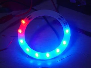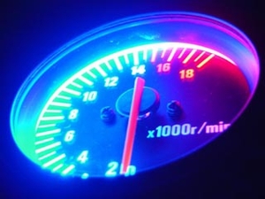 タコメーターのLED化です。 日亜化学社の青色LEDを7個、赤色LEDを2個 配置しています。 |