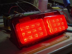 テールランプは2灯式なので片方に12個の赤色 Super Flux LEDを配置しています。 |