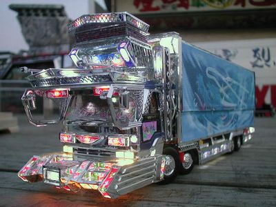 「電球色ヘッドライト!」 (KENTA様 11/27/2003) ● こんにちは、ここのお店にてちょくちょくLED製品を買わせていただきました☆ プラモデルのトラックにLEDを仕込んで夜中のシーンを再現しました。 まだまだ経験不足なのですっきりとは点灯しておりませんが今後も進化 させようと思います。お気に入りはヘッドライトに使った電球色LEDです♪ 【店長のコメント】 ◆ あまりに良くできているので最初は本物のトラックかと勘違いしてしまいましたよ。(^_^;) | 拡大